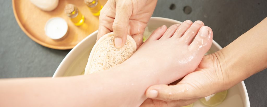 Warm soak and scrub, followed by a relaxing foot and lower legs massage.